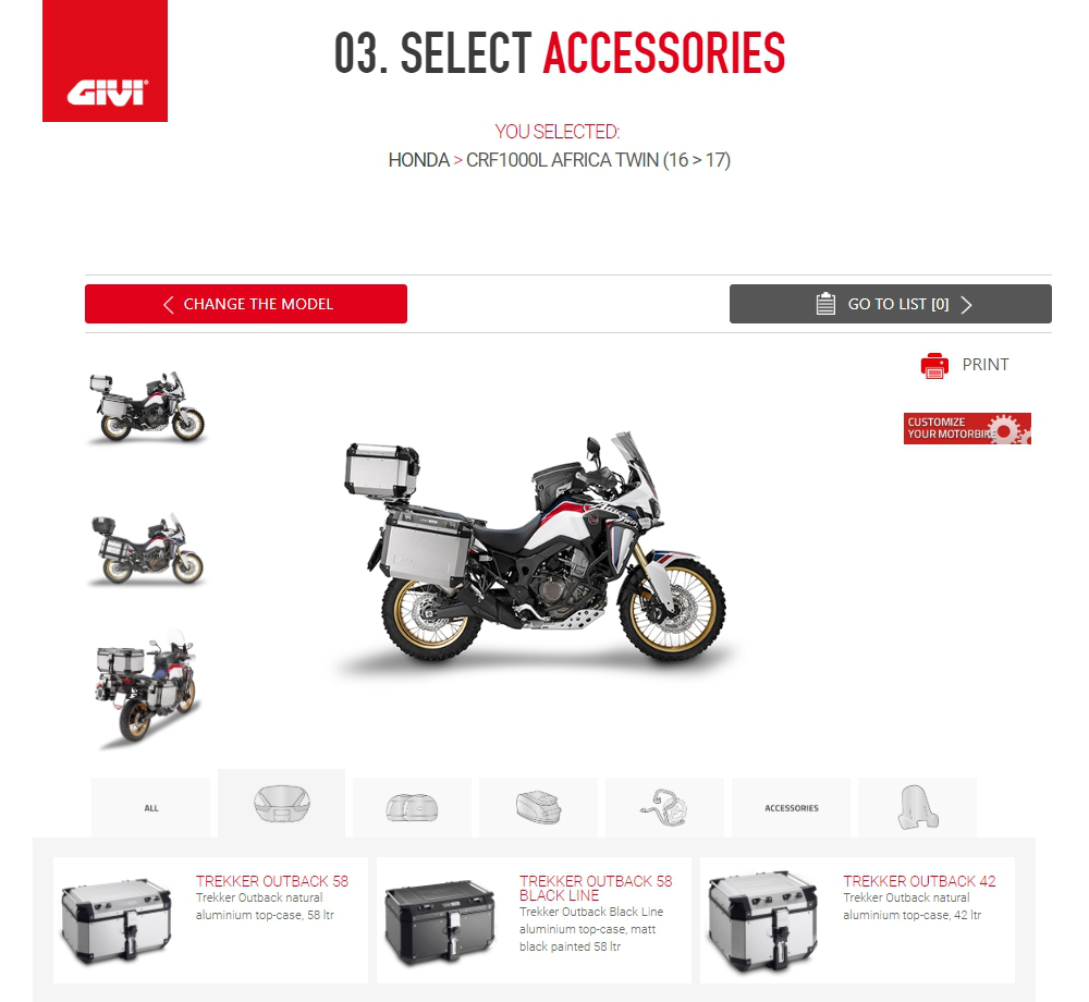 Would you like to fit out your motorbike with Givi's accessories? Thanks to this brand new virtual tool, Givi will help you find accessories which will be perfect for you and your requirements!