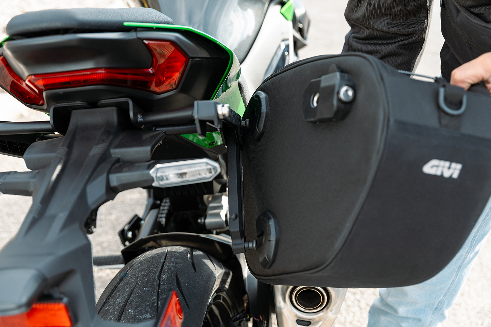 With Stealth, GIVI introduces a new concept of functionality, ensuring a rapid configuration change: in just a few seconds, you can transform your bike from a clean, minimalist look to a travel‑ready setup without complications.